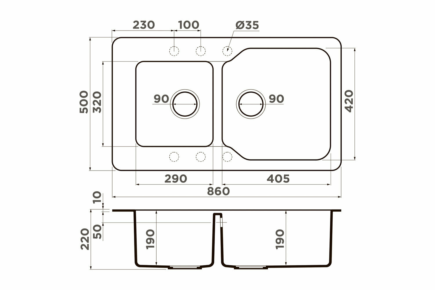 Мойка гранитная для кухни Omoikiri Maru 86-2-EV 860х500 мм 4993290 эверест