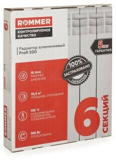 Радиатор отопления алюминиевый ROMMER Optima 500, 6 секций. Секционный радиатор. Батарея