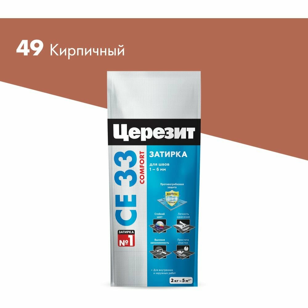 Купить Затирка Ceresit CE 33 Comfort №49, кирпичная, 2 кг