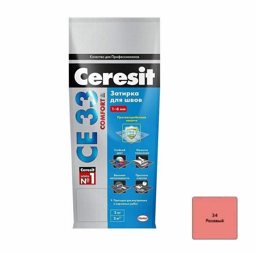 СохранитьЗатирка Ceresit CE 33 Comfort №34, розовая, 2 кг интересное: