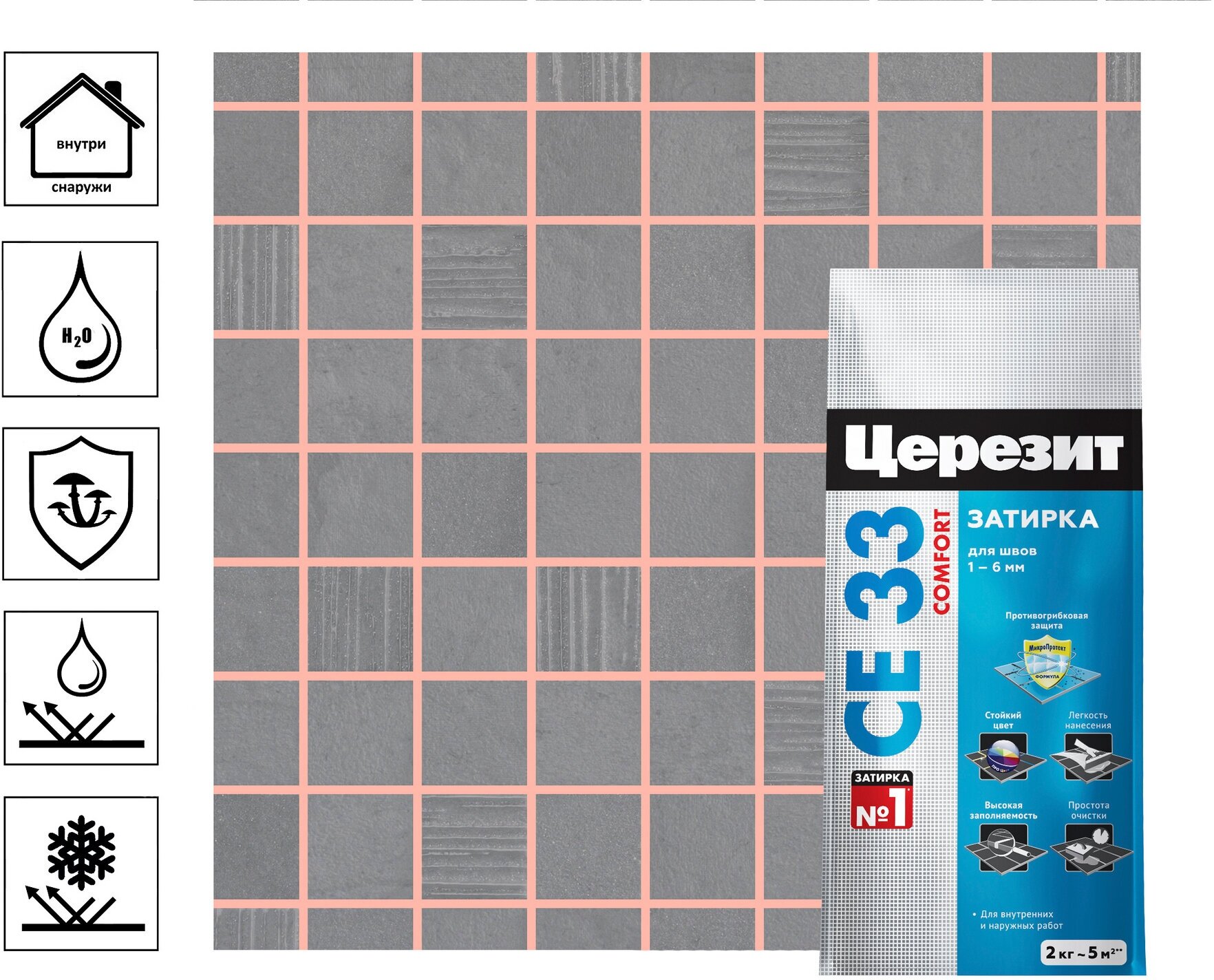 Затирка для плитки Церезит CE 33 Comfort №04 серебристо-серая 2 кг