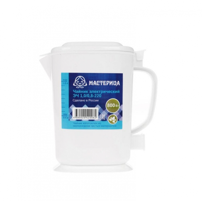 Чайник электрический Мастерица ЭЧ-10/08-220Б, пластиковый, белый, 1 л, 800 Вт