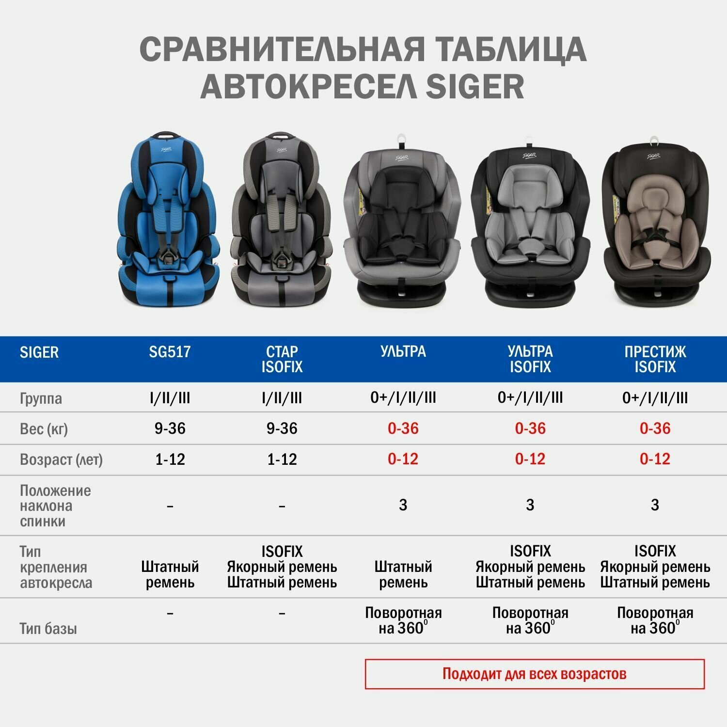 Автокресло Siger Стар SG517 сер, 9-36 кг KRES3009