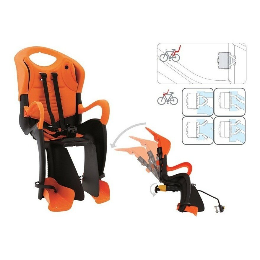 Детское велокресло BELLELLI Tiger Relax B-FIX, на подседельную трубу, чёрно-оранжевое, до 22 кг, 01TGTRB0001