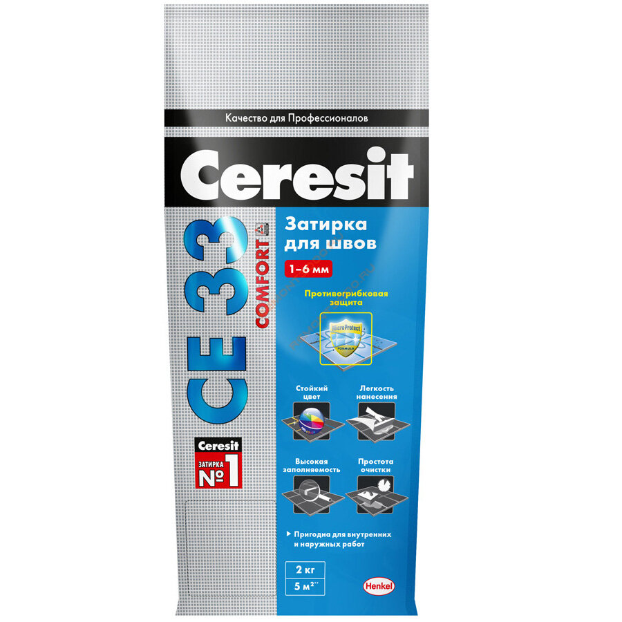 Церезит СЕ 33 затирка противогрибковая №41 натура (2кг) / CERESIT CE-33 Comfort затирка цементная для швов противогрибковая №41 натура (2кг)