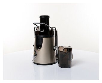 Носик поднимается вверх, чтобы не капали остатки после окончания отжима. 2 режима работы - обычный и усиленный (еще больше оборотов). Прорезиненные ножки от лишней вибрации. Удобный стакан для сока на 600-700мл. |