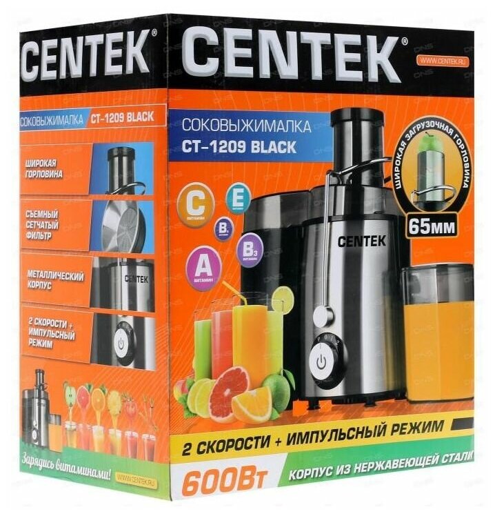Соковыжималка CENTEK CT-1209, нержавеющая сталь и черный