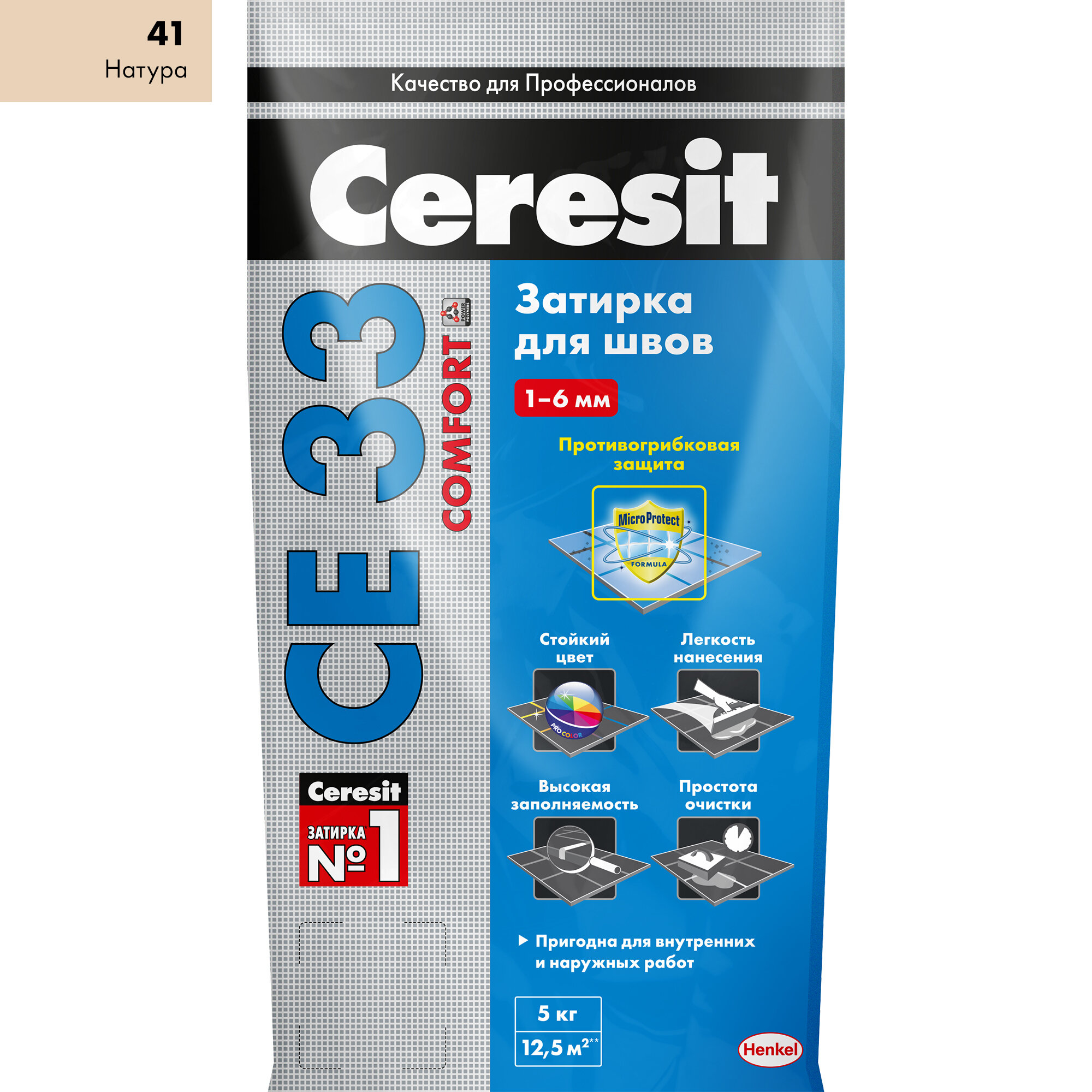 СохранитьЦерезит СЕ 33 затирка противогрибковая №41 натура (5кг) / CERESIT CE-33 Comfort затирка цементная для швов противогрибковая №41 натура (5кг) интересное: