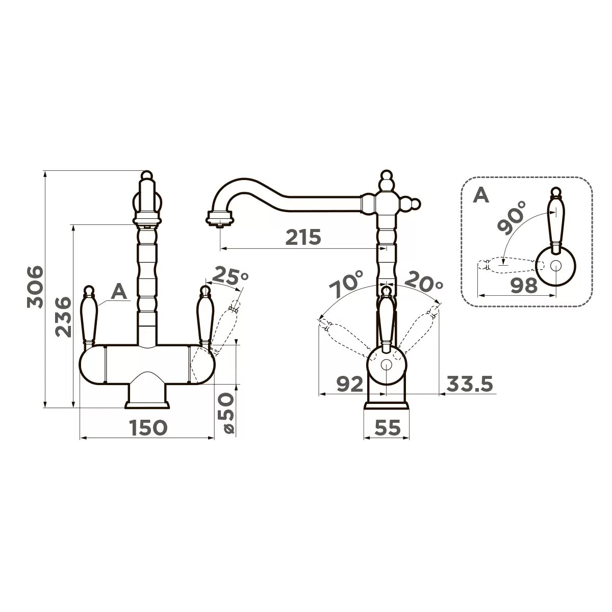 Смеситель для кухни с подключением к фильтру эверест Omoikiri Amagasaki-EV