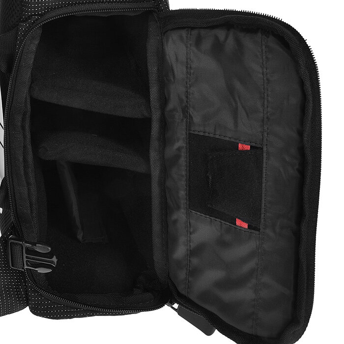 | Плюсы: | Отсеки довольно хорошо расположены и позволяют взять камеру, пару объективов и мелочевку. |