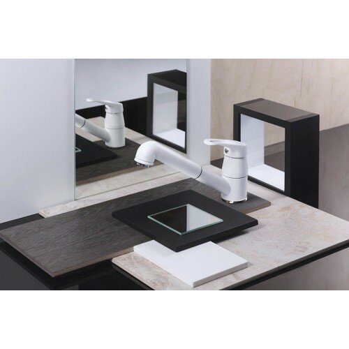 Смеситель для кухни OMOIKIRI Tateyama-S-WH с выдвижным изливом/ Белый