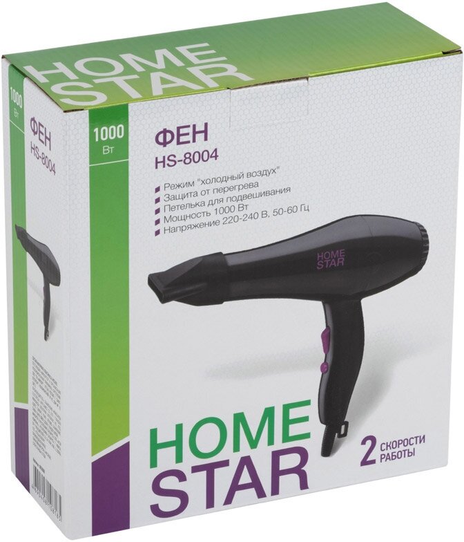 Фен HOMESTAR HS-8004 1000 Вт, черный