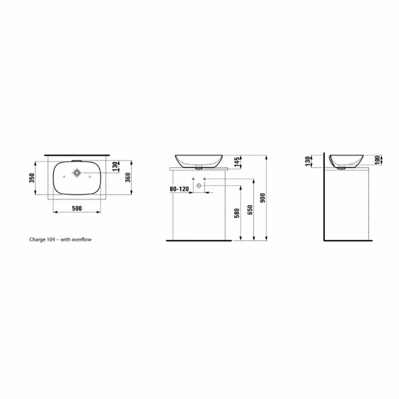 Накладная раковина Laufen Ino 50х36х13см, арт. 8.1230.2.000.109.1, SaphirKeramik, без отверстия для смесителя, с переливом