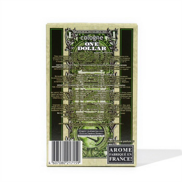 POSITIVE PARFUM Cologne One Dollar Одеколон для мужчин 60 мл интересное: