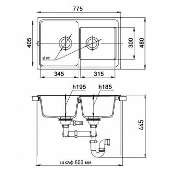 Мойка EWIGSTEIN Elegant 80D 780*480 2 чаши (антрацит)