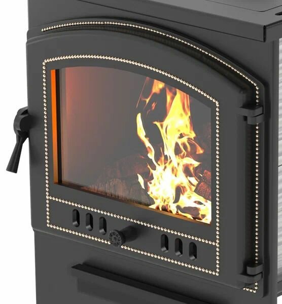 | Плюсы: | Внешний вид, дверца со стеклом, что ускоряет прогрев помещения. |