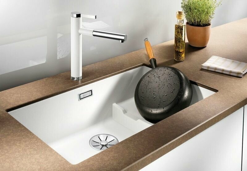 Мойка BLANCO SUBLINE 700 U Level SILGRANIT белый с отводной арматурой InFino 523542