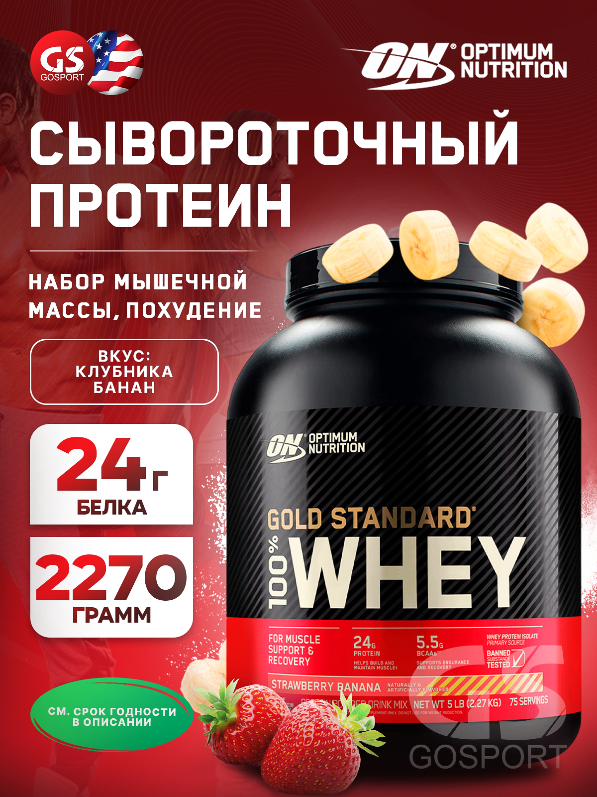 Купить Протеин Optimum Nutrition 100% Whey Gold Standard 2270 г, клубника-банан