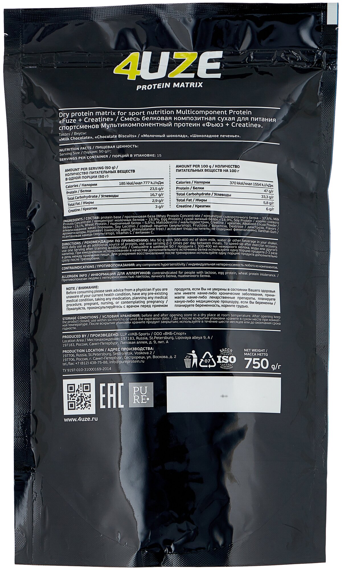 4UZE Протеин «Фьюз 47% + креатин», вкус «Молочный шоколад», 750 гр, 4UZE