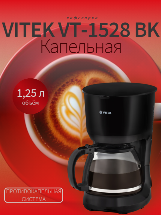 Кофеварка капельная VITEK VT-1528, черный (VT-1528)