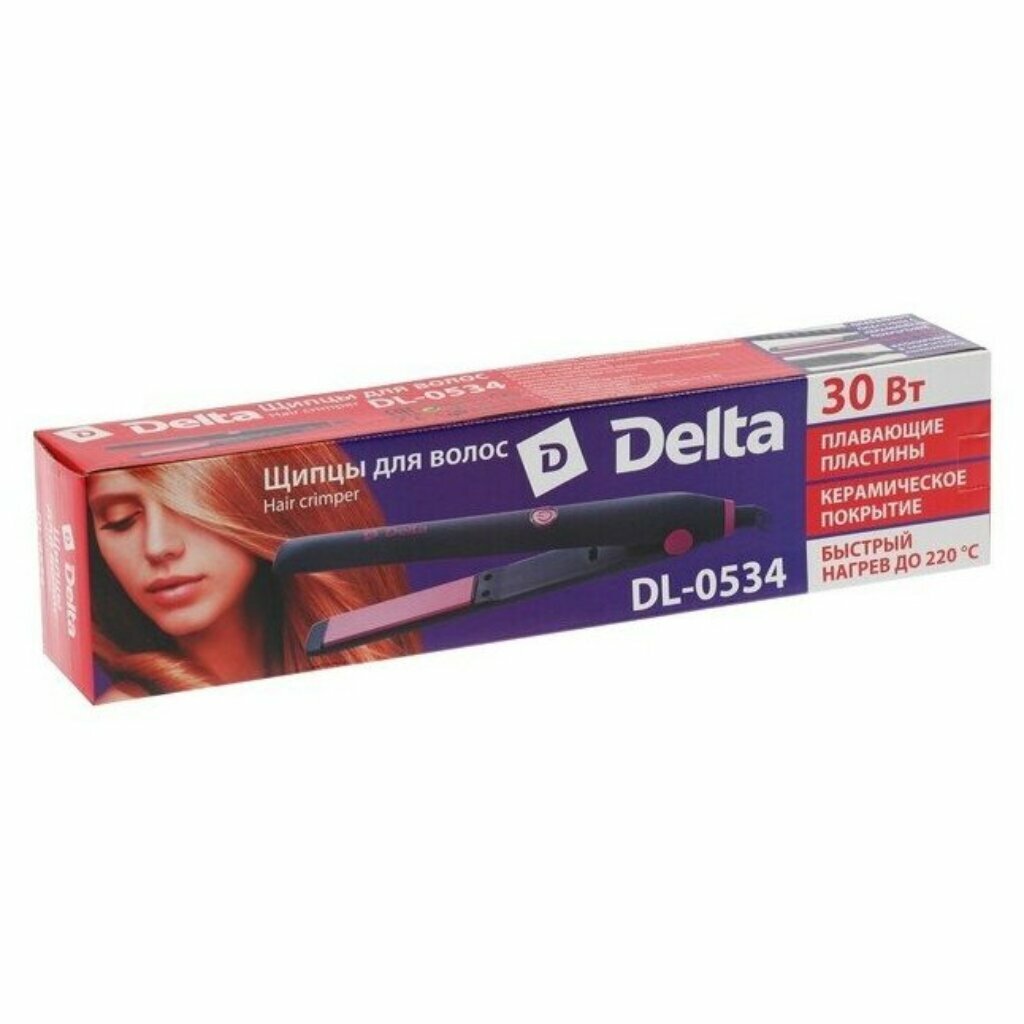 Щипцы для волос DELTA DL-0534, 30 Вт, черный с розовым