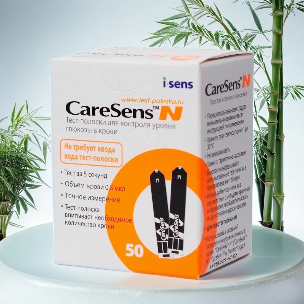 Тест-полоски для глюкометра CareSens N (КеаСенс Н), 50 шт., измерение сахара в крови, мониторинг глюкозы для диабетиков
