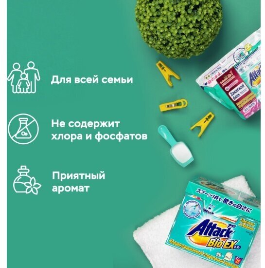 КAO Attack Bio EX Высокоэффективный стиральный порошок с цветочно-травяным ароматом, 900 г