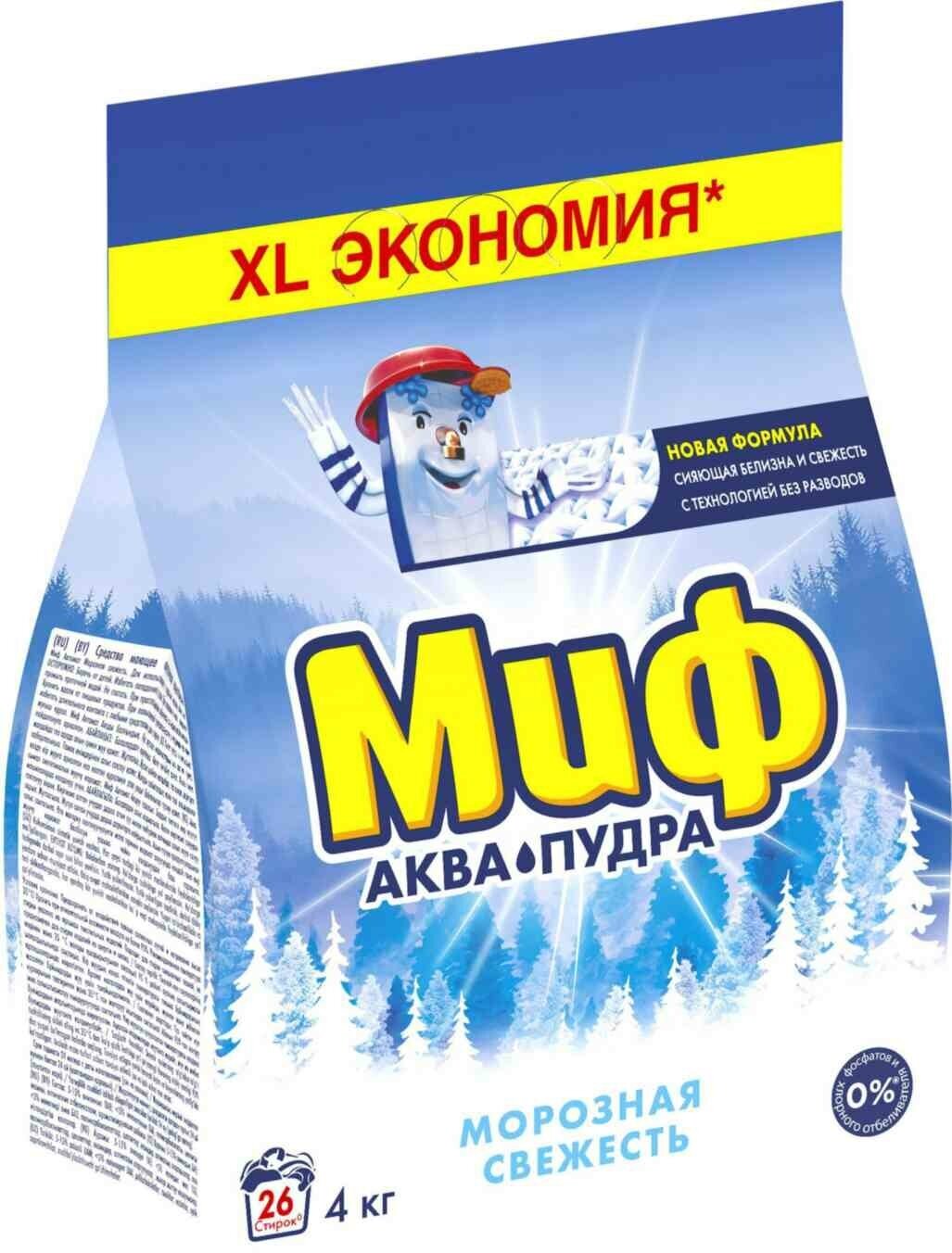 Порошок для машинной стирки Миф 3в1 Аквапудра Морозная Свежесть, 4кг