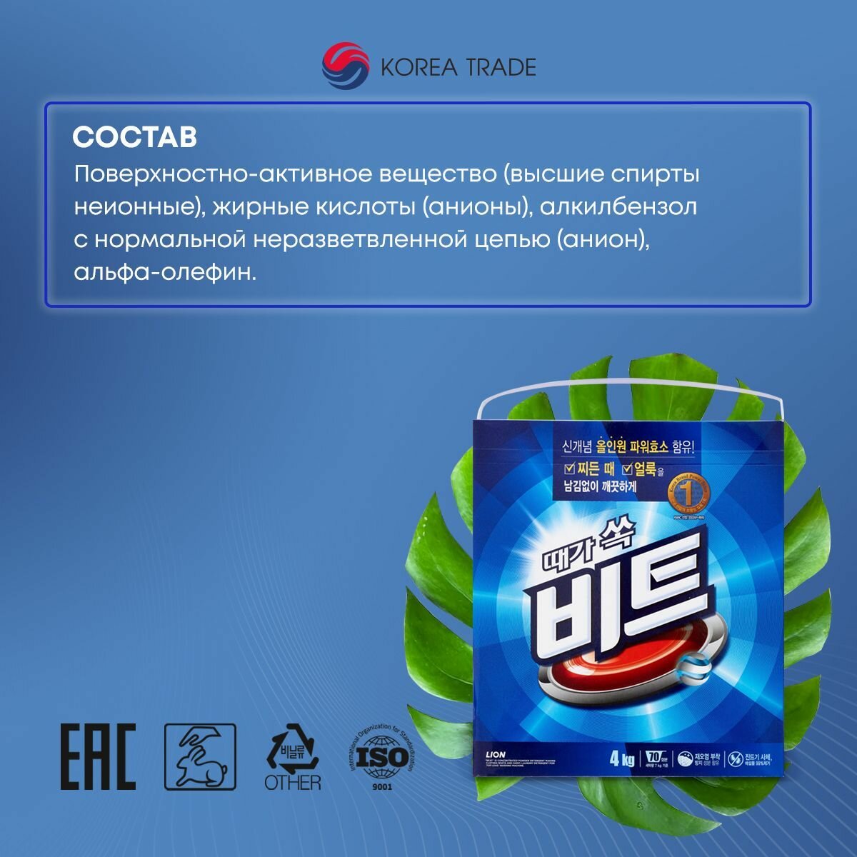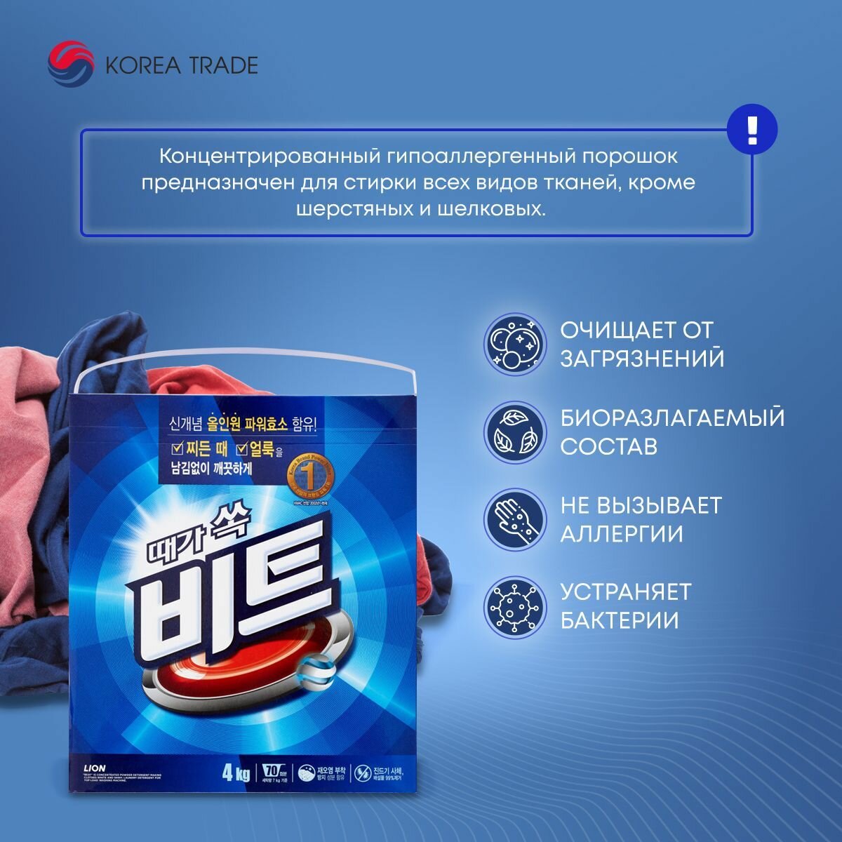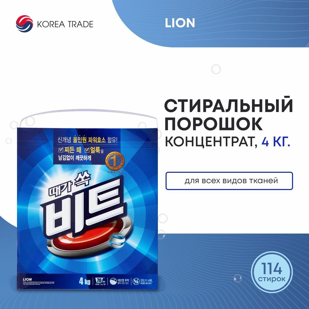 LION BEAT 4kg Концентрированный стиральный порошок для ручной и автоматической стирки (для всех видов тканей) "BEAT"
