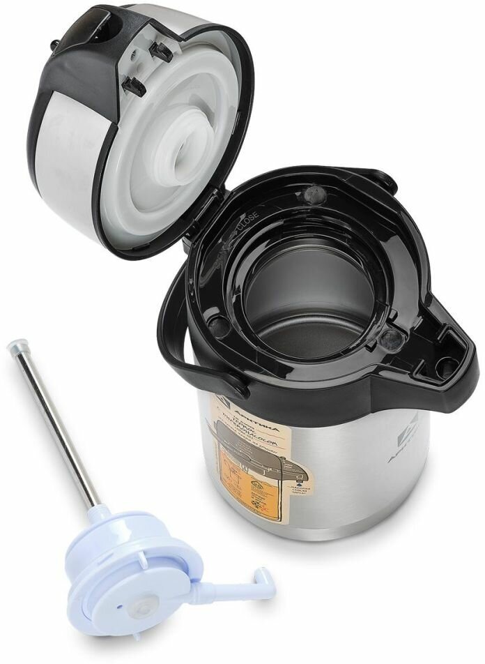 Термос для чая и кофе с помпой Арктика 501-3000 серебристый 3 литра настольный вакуумный с пневмонасосом и ручкой для переноски