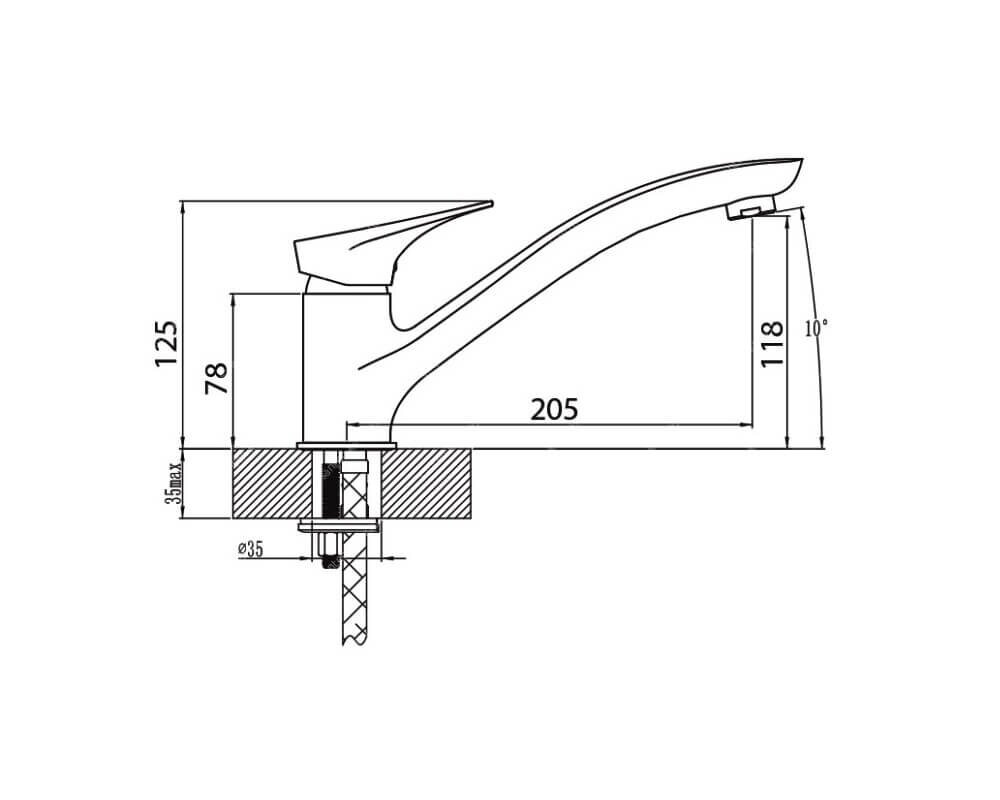 | Длина излива | 205 мм |