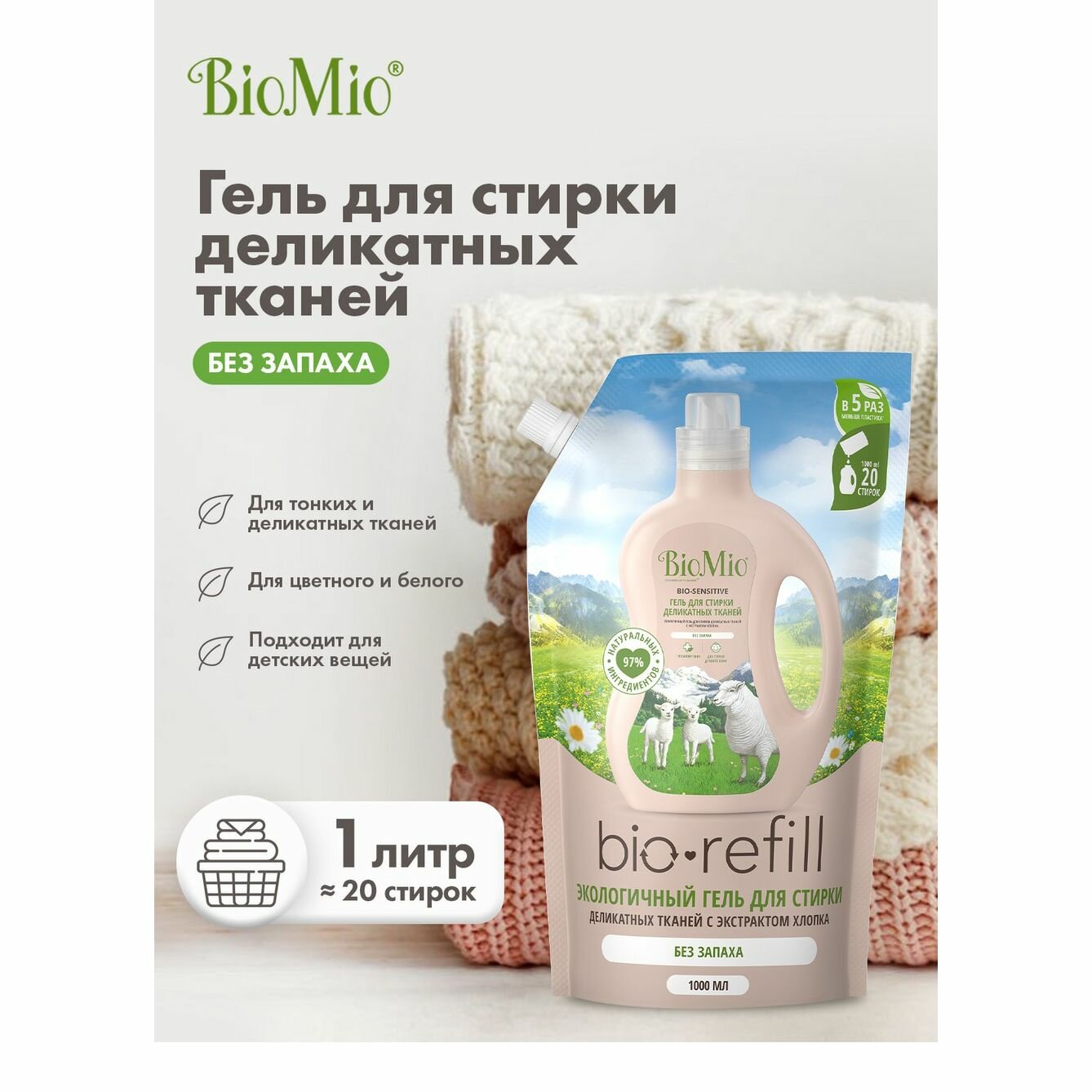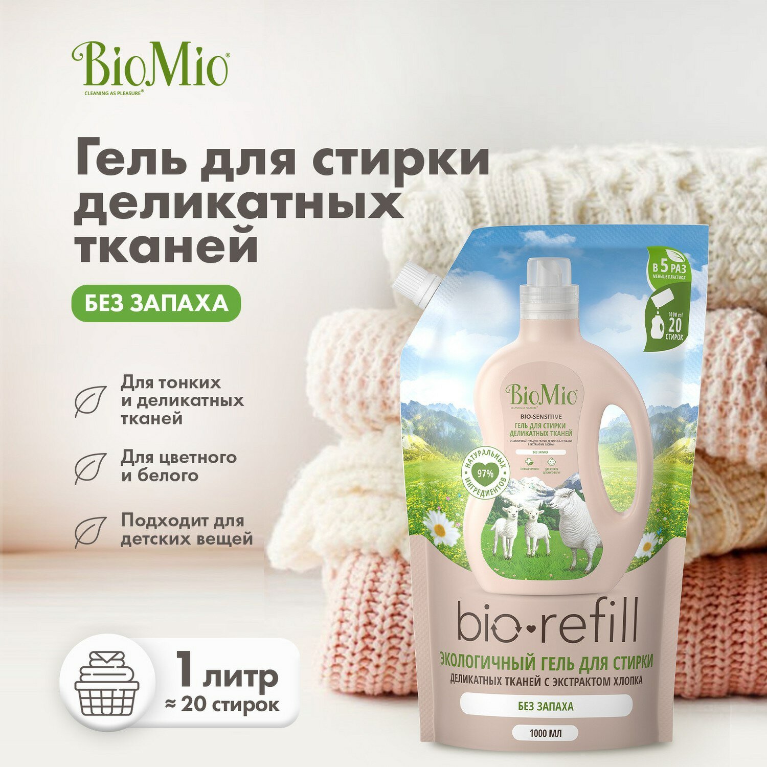 Гель для стирки Biomio BIO-SENSITIVE REFILL для деликатных тканей, без запаха, экологичный, 1 л, м/у