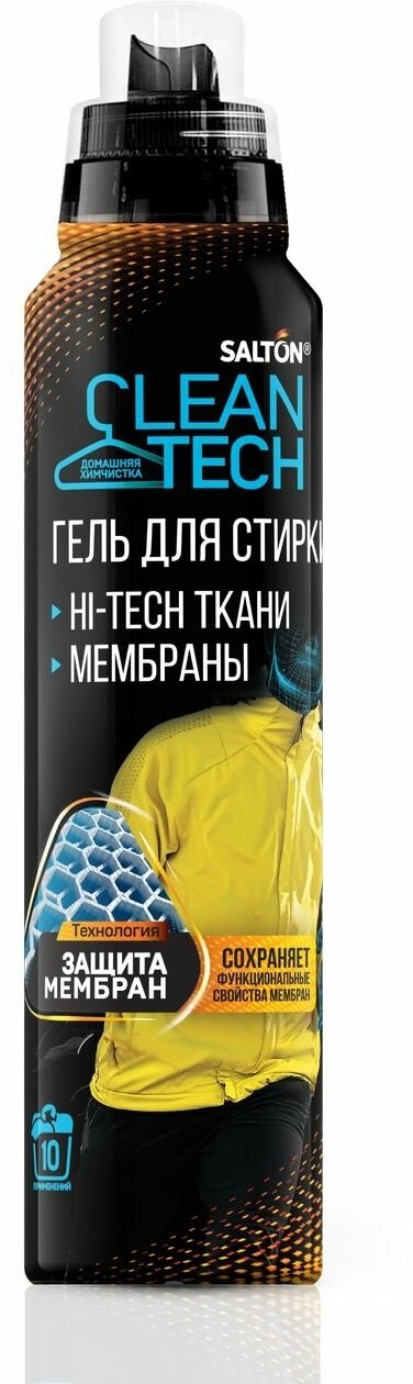 Для стирки мембраны перешла только на этот гель Salton CleanTech. К мембране относится очень бережно, не портит внешний вид и качество вещей, не имеет резкого запаха. Одной бутылочки хватает на пять стирок. Все функции заявленные производителем соответствуют действительности.
