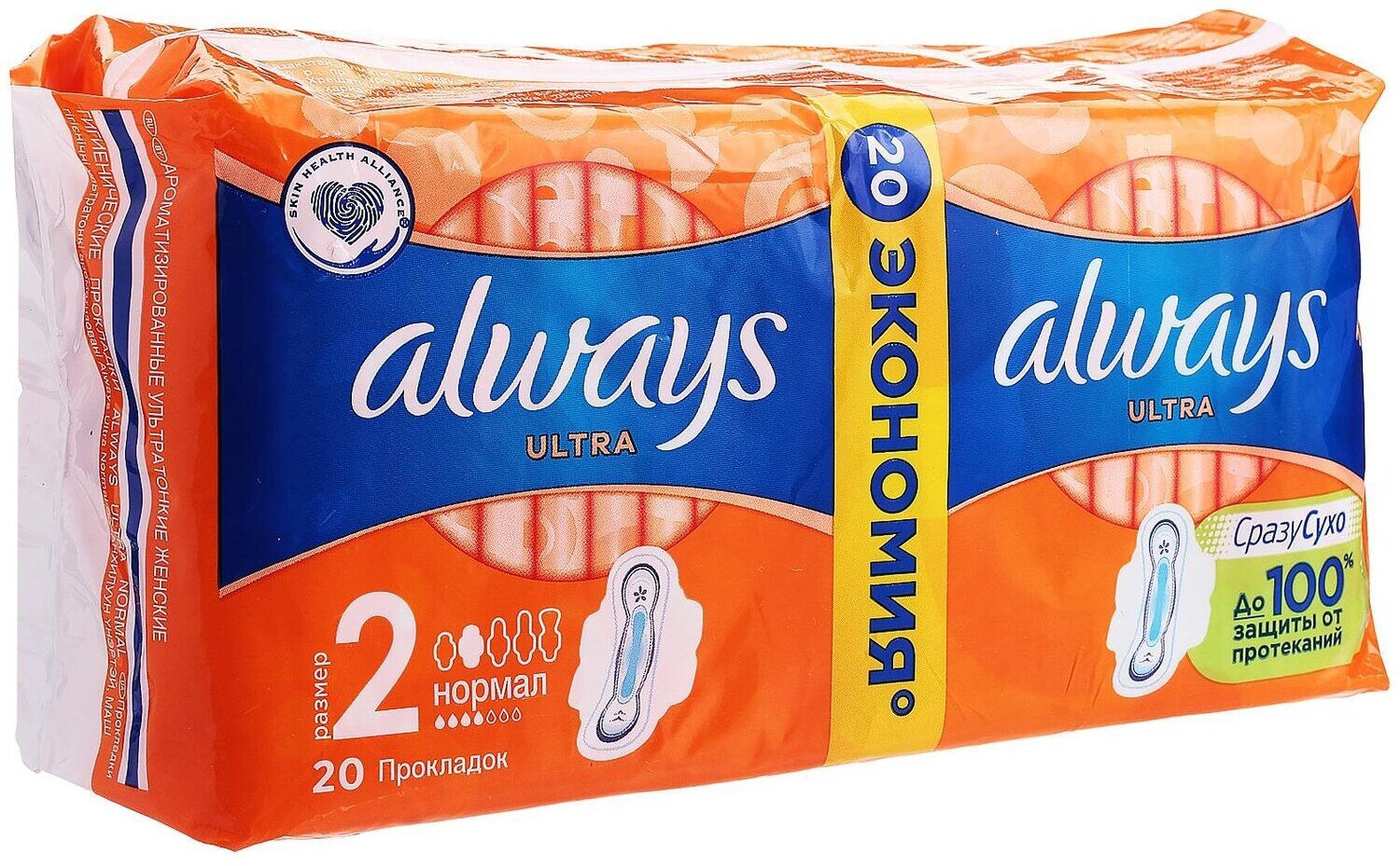 Женские гигиенические Прокладки с крылышками Always Ultra Нормал, размер 2, 20 шт.