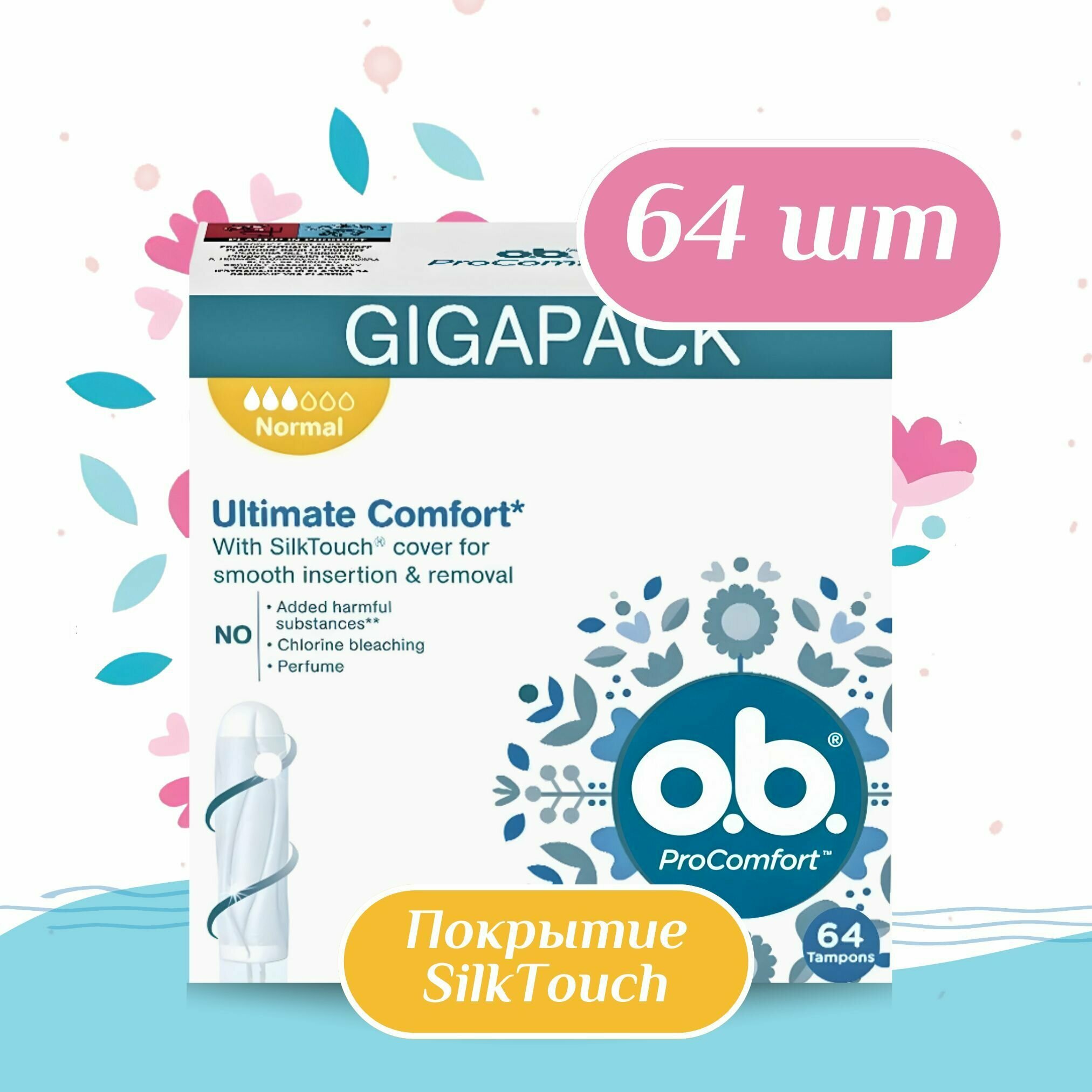 O.b. тампоны ProComfort Normal, 3 капли, 64 шт.