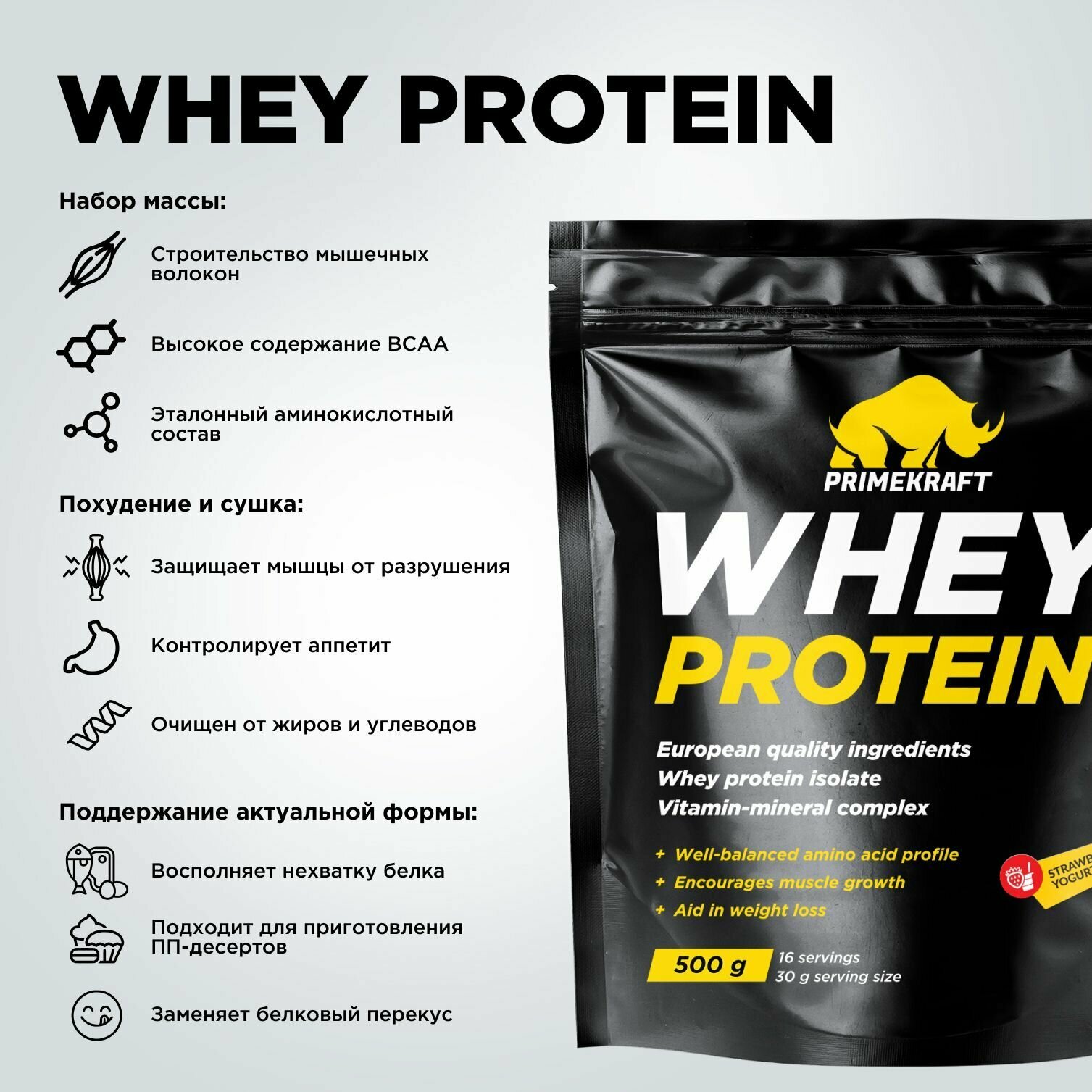 Протеин сывороточный PRIMEKRAFT Whey Protein, Клубничный йогурт 500 г / 16 порций