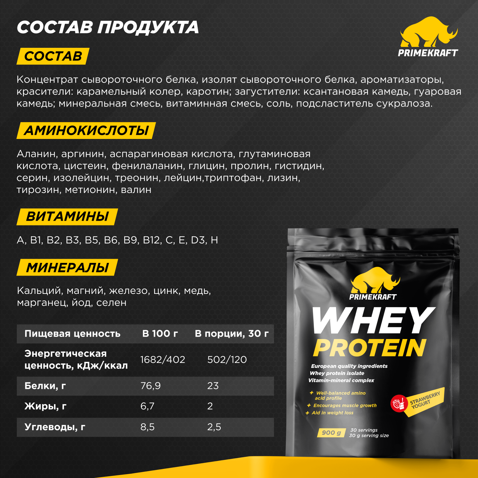 Протеин сывороточный PRIMEKRAFT Whey Protein, Клубничный йогурт 500 г / 16 порций