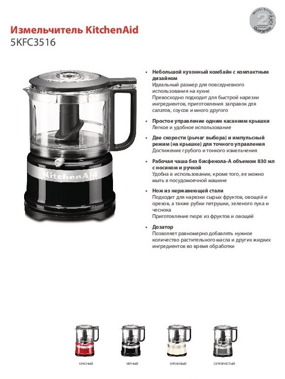 Мини-кухонный комбайн KitchenAid, 5KFC3516, отлично подходит для измельчения, приготовления заправок и соусов.
