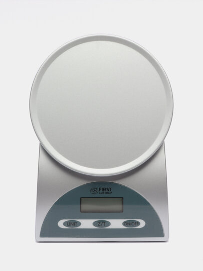 FIRST FA-6405 Silver Весы кухонные, электронные, 5 кг, 1 гр.тарокомпенсация, Автоматическое ручное отключен, серый