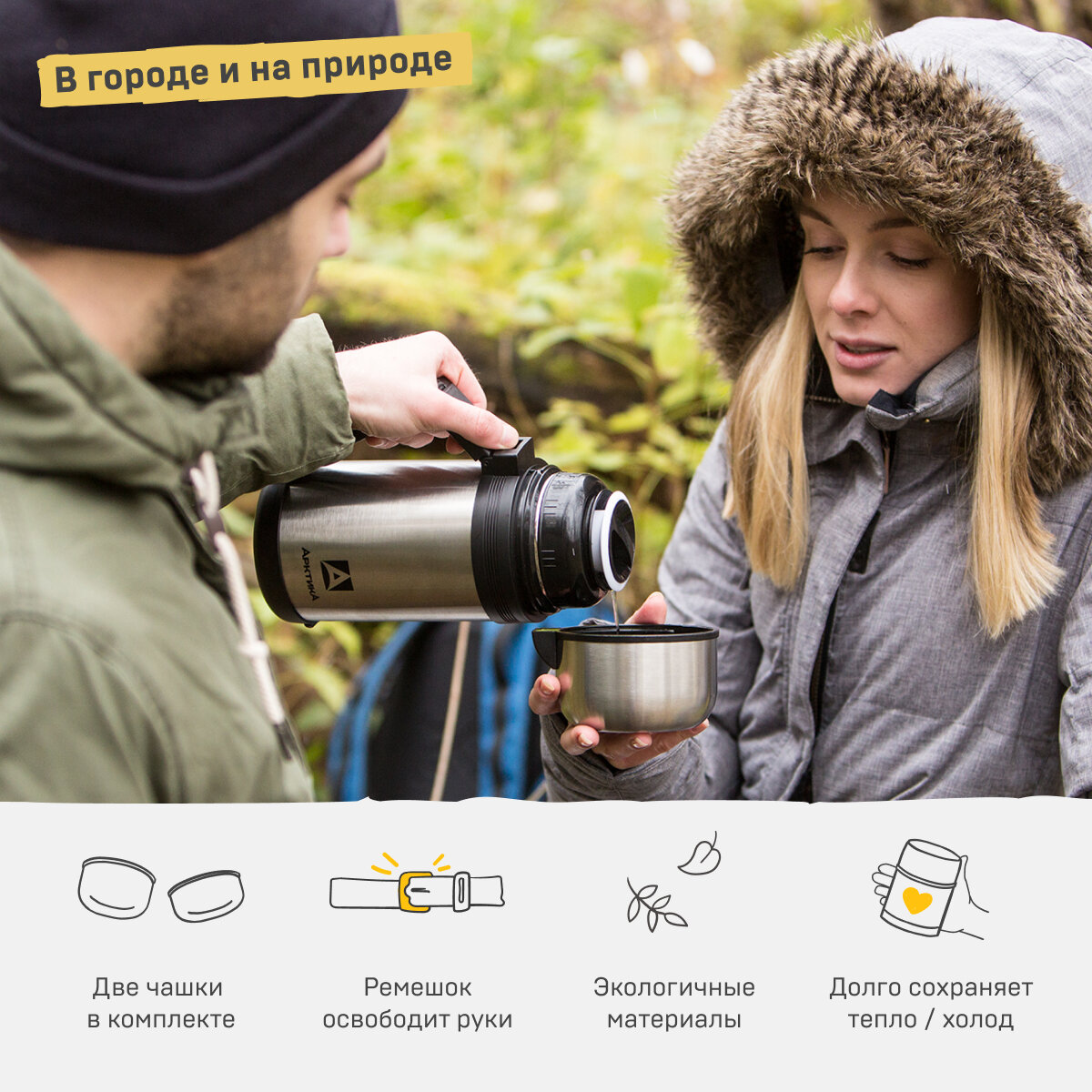 СохранитьТермос для еды и напитков 1,2 л тм Арктика 201-1200 с ручкой для похода интересное: