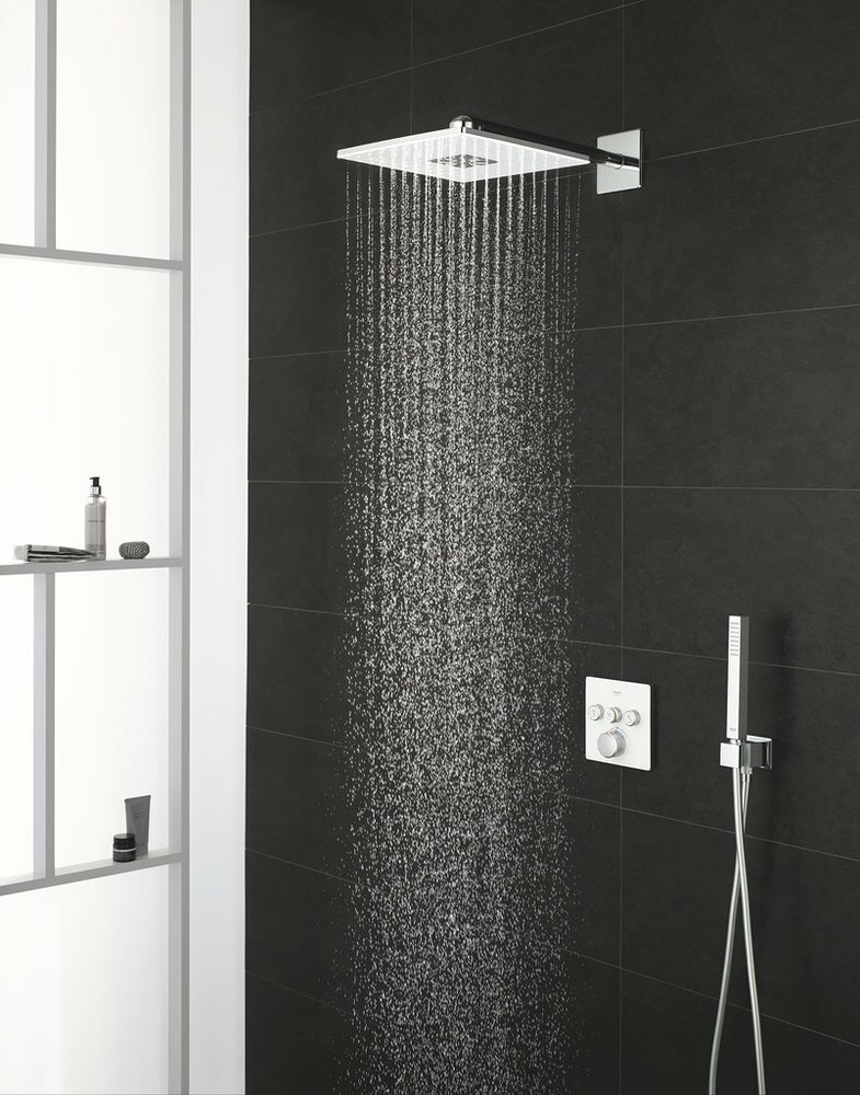 Верхний душ Grohe Rainshower SmartActive Cube 26479LS0 с душевым кронштейном 430 мм, 2 режима струи, белая луна