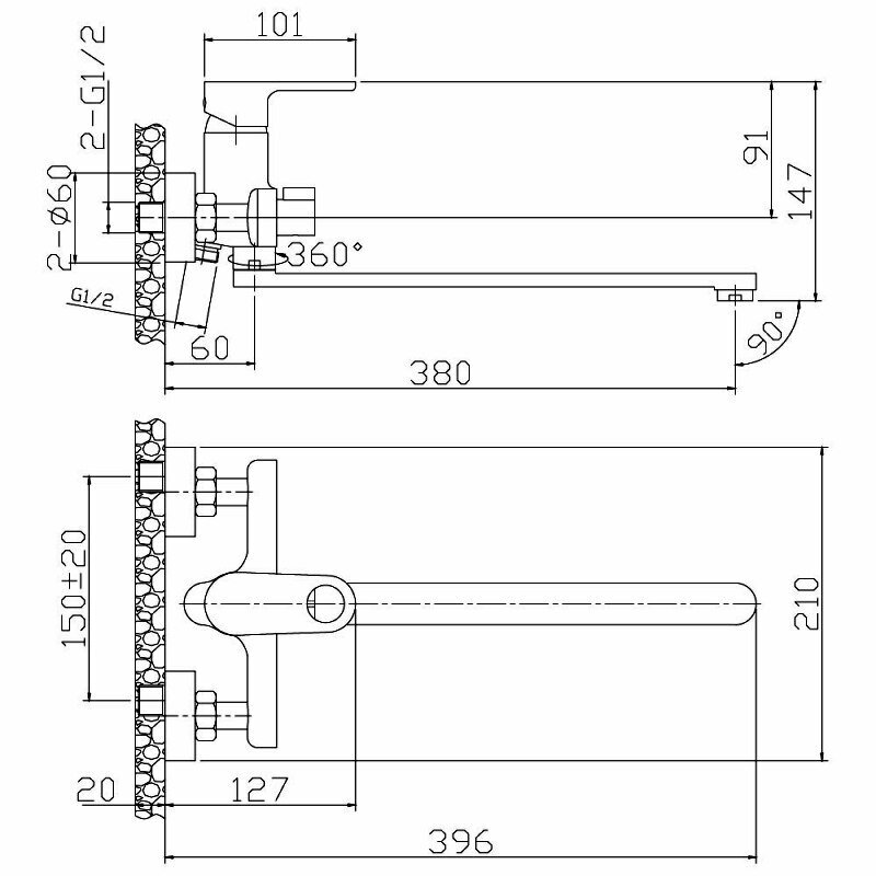 | Управление смесителем | рычажное |