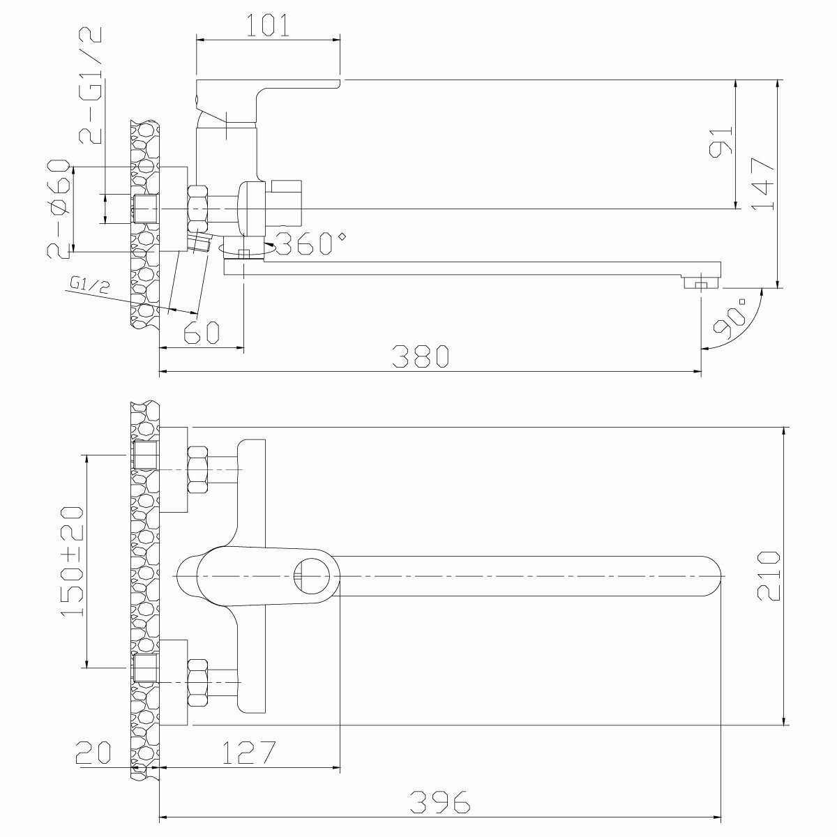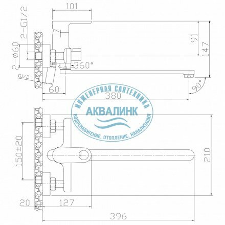 | Длина излива | 380 мм |