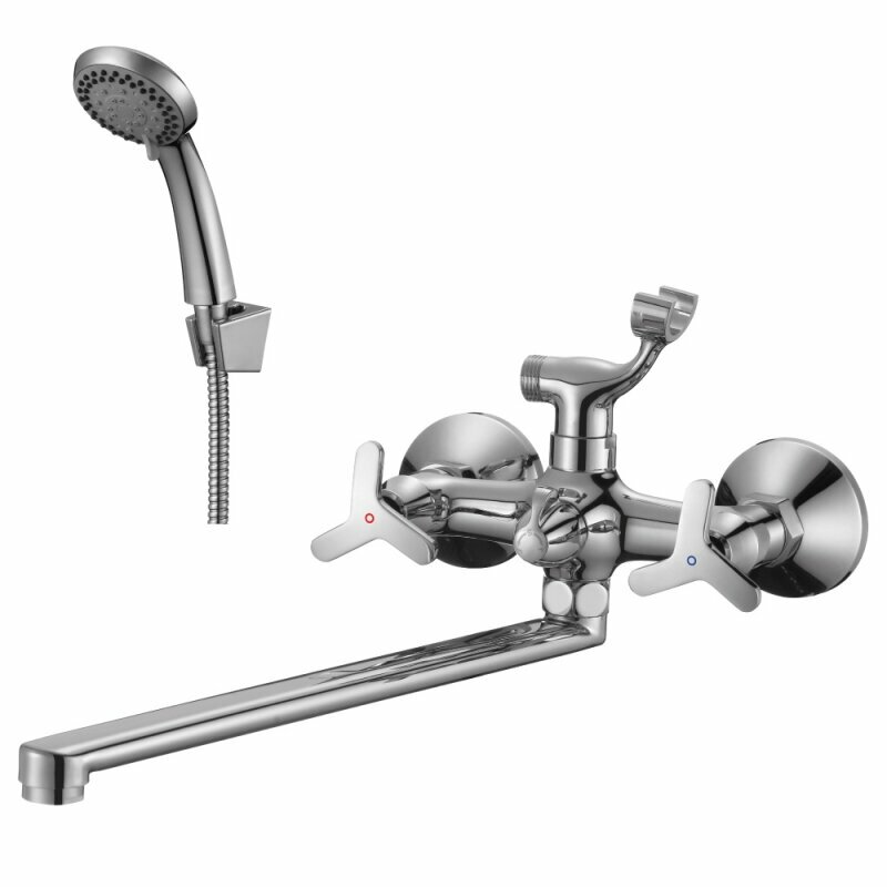 | Минусы: | Если нужен смеситель одновременно для ванной и раковины, то этот вариант не слишком удобный. При повороте излива в сторону раковины получается очень маленькое расстояние между вентелем и изливом - пальцы не пролезают при повороте. |