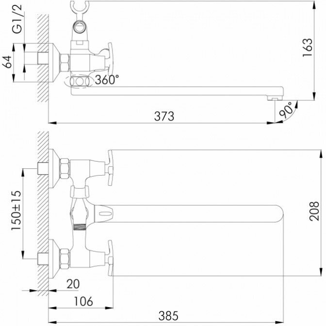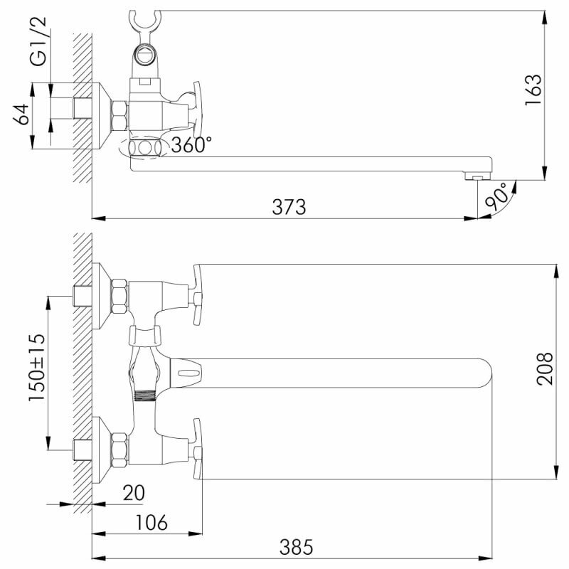 | Минусы: | Если нужен смеситель одновременно для ванной и раковины, то этот вариант не слишком удобный. При повороте излива в сторону раковины получается очень маленькое расстояние между вентелем и изливом - пальцы не пролезают при повороте. |