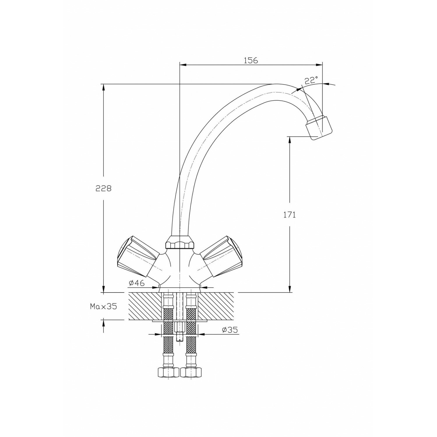 | Длина излива | 156 мм |