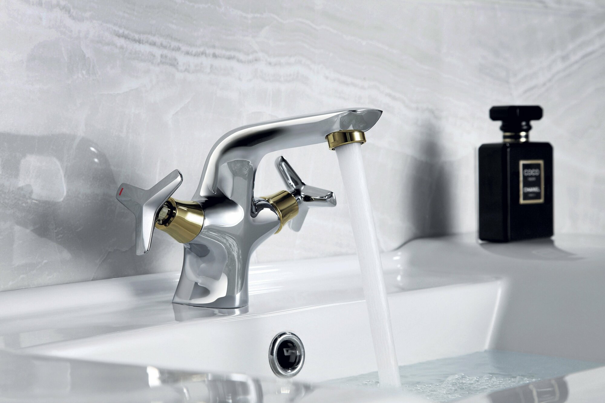 Смеситель для раковины Rossinka RS41-61 хром/золото