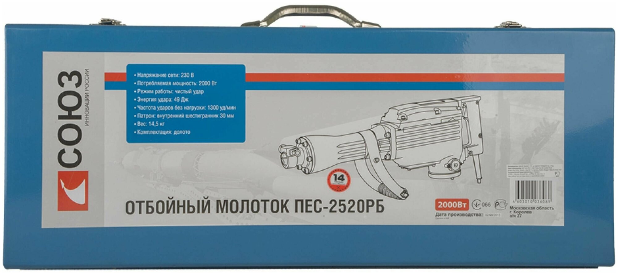 Отбойный молоток СОЮЗ ПЕС-2520РБ, 2000 Вт