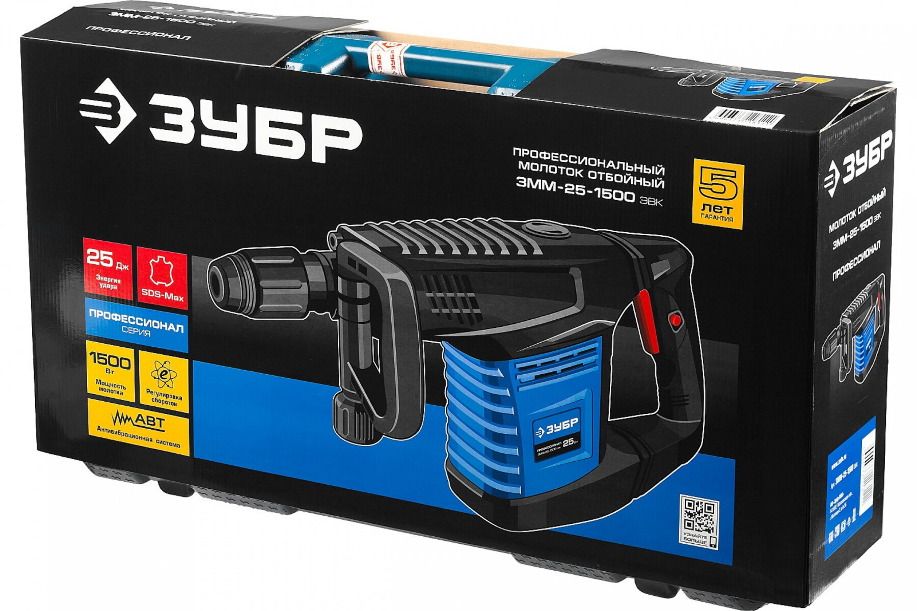 ЗУБР 25 Дж, 1500 Вт, АВТ, отбойный молоток SDS-Max, Профессионал (ЗММ-25-1500 ЭВК) ЗММ-25-1500 ЭВК