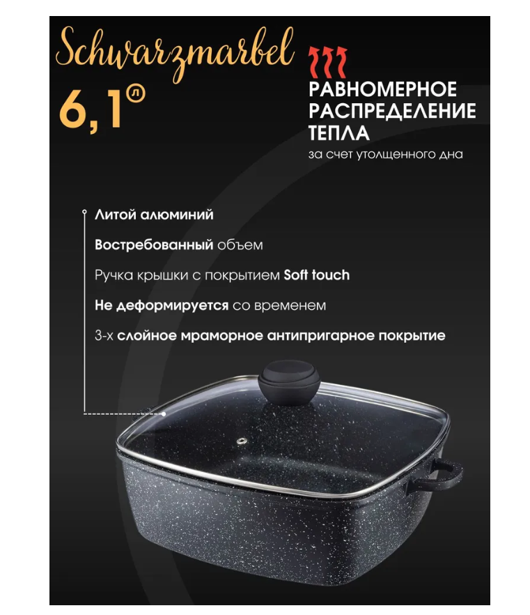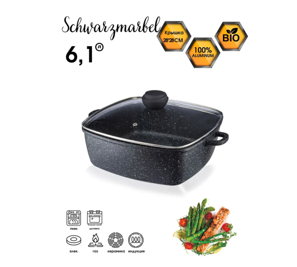 Кастрюля BK-3824 6,1л квадрат. SCHWARZMARBEL